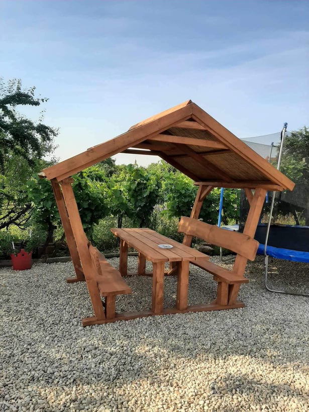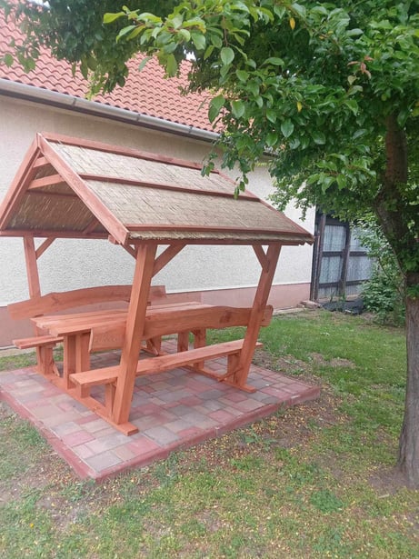 Laci nagyon hamar leszállította a rendelt kiülőt, 2 éve használjuk, azóta is csak lazúrozni kellett, mindenkinek szívből ajánljuk!